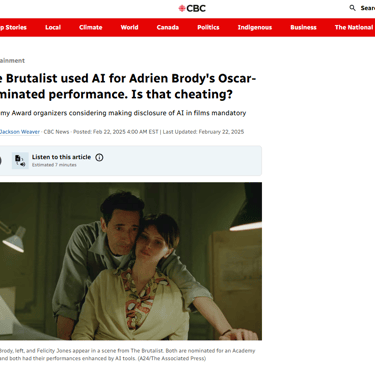 Only a brief excerpt of the entire interview was included in the final broadcast (as is typical for television news). However, the segment highlights how — although its use in The Brutalist was warranted — we need to be vigilant about the application of artificial intelligence in the industry.